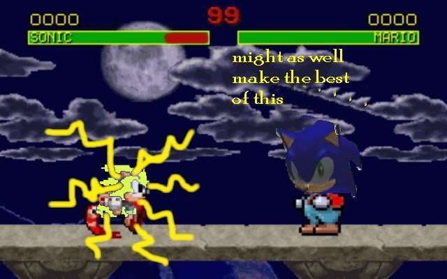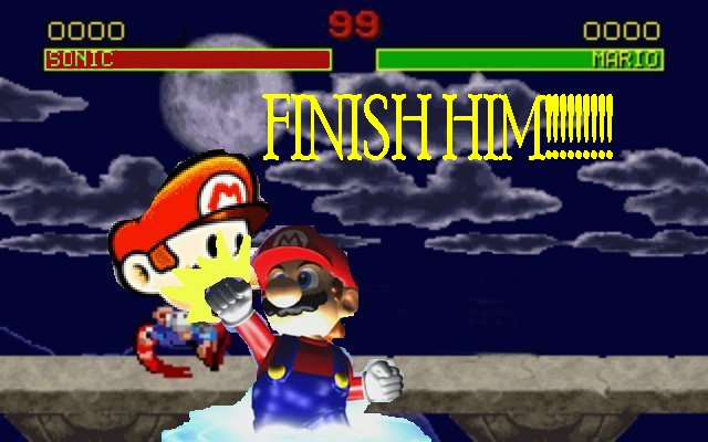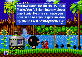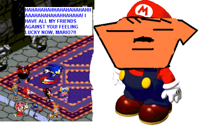 Ah, Mario vs Sonic one of the greatest rivalries of all time! I've made serval pictures illustrating their battle. I made most of these a few years ago and most are quite odd. (I think you will see I am biased AHAHAHA) I also think you'll see some of the captions are kinda lame but i still like the pics :P